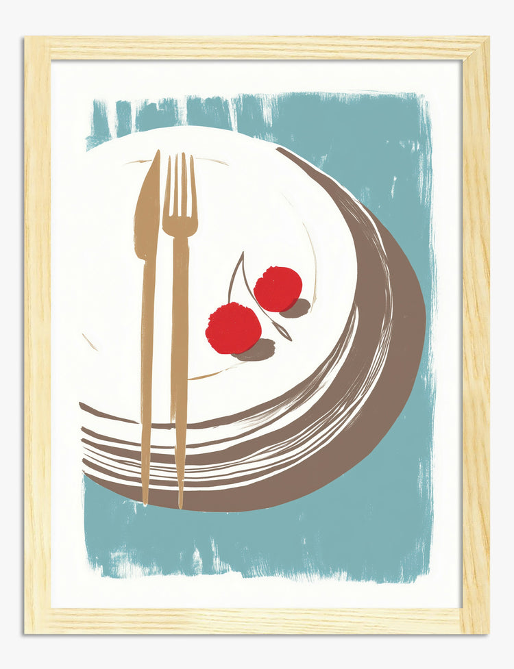 Deux cerises éclatantes et des couverts épurés : parfois, le moins est vraiment le mieux. Cette affiche ludique insuffle une touche de modernité à votre intérieur et distille un style sans effort à chaque regard. Ses lignes nettes et ses couleurs fraîches créent une ambiance à la fois détendue et accueillante, idéale pour la cuisine ou la salle à manger lorsque vous souhaitez susciter la conversation et la joie.