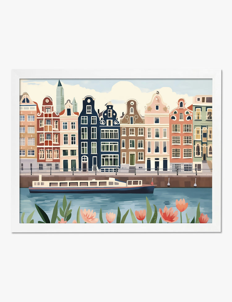 Bold color meets Dutch nostalgia in this vibrant cityscape. Bring the magic of Amsterdam’s iconic canal houses right into your space—no passport required. Whether you want to energize your living room or add a playful touch to your entryway, this piece instantly transports you to a place where every day feels like an adventure. With its crisp blues, warm peach tones, and whimsical architecture, this print pops beautifully against neutral walls and complements both modern and vintage decor. Let your home tell a story of wanderlust and creativity—every time you walk by, you’ll feel a little rush of joy and pride in your unique style. Ready to make your walls a conversation starter? This is your ticket to effortless transformation.