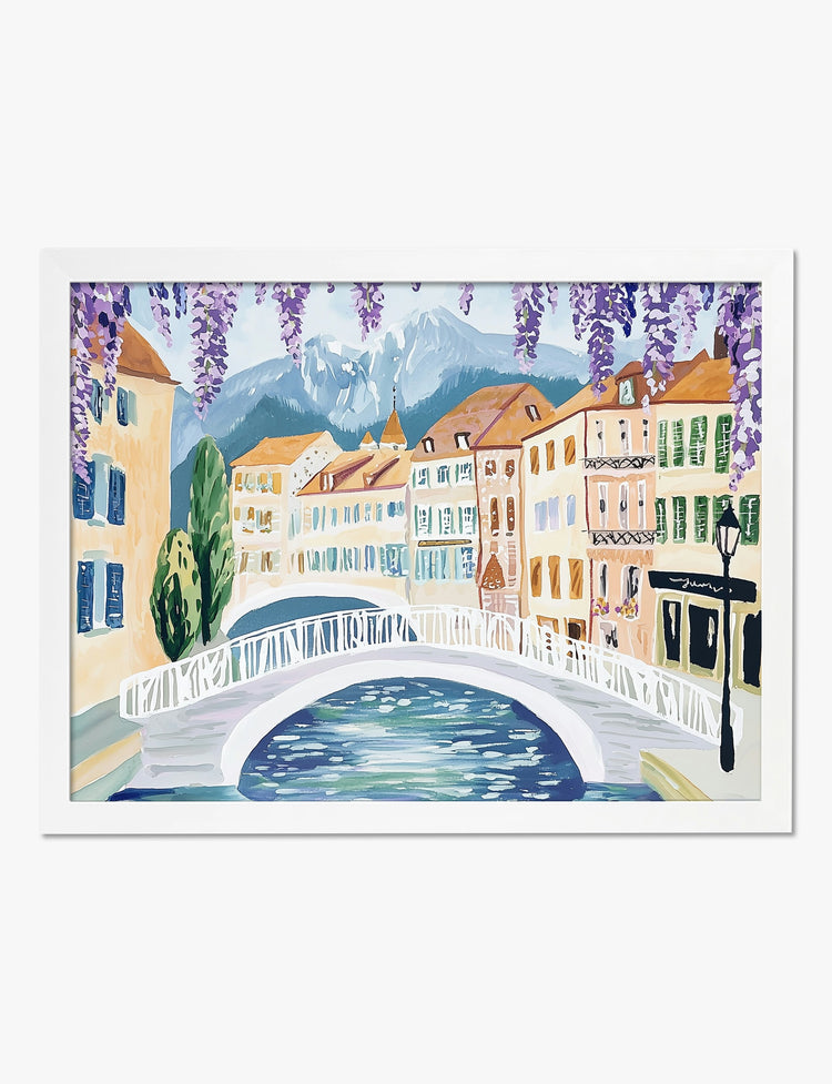 Wisteria drapes the scene in soft purples while pastel-hued townhouses line a gentle canal—this piece is pure French charm for your walls. Instantly, you’ll feel transported to a sunlit morning in Annecy, where every window tells a story and every bridge invites a pause. Hang it in your living room or bedroom for a daily dose of wanderlust—its soothing blues and warm peach tones blend effortlessly with both modern and classic décor. Let this print spark conversation and pride in your unique style, making your space feel both worldly and welcoming. With Fab, it’s easy to bring a touch of Europe home—no passport required.
