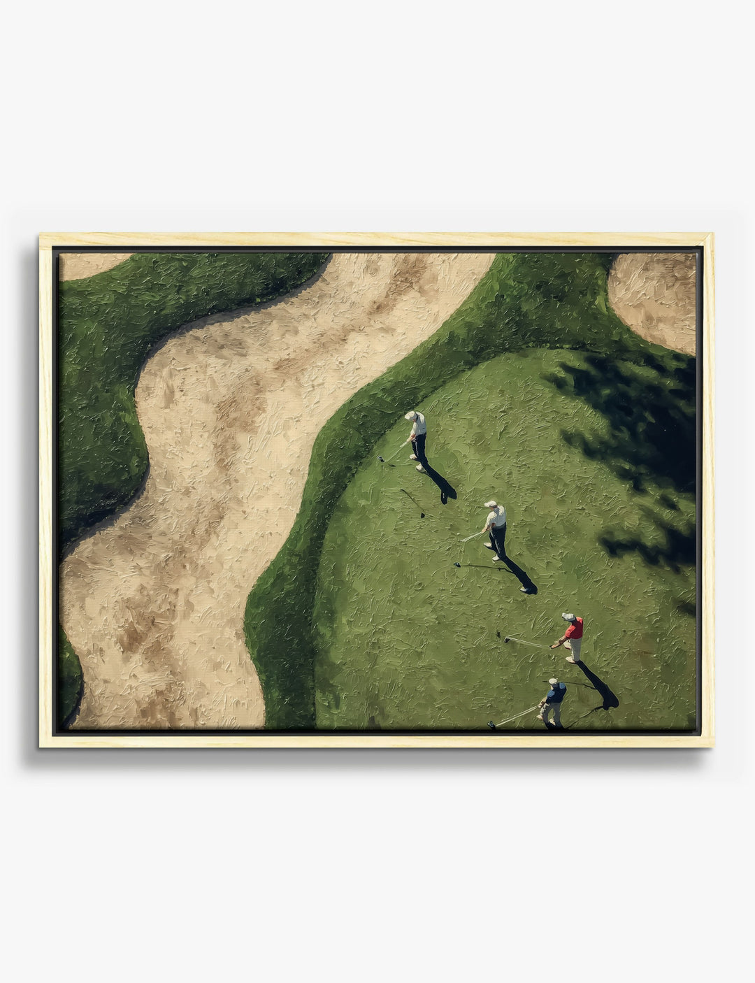 From above, every swing becomes a story. This dynamic piece captures golfers mid-game, their shadows stretching across the lush green, inviting you to feel the quiet focus and camaraderie of the course. Bring a sense of calm energy to your living room or office—this artwork’s earthy greens and sandy hues blend beautifully with both modern and classic decor. It’s more than just a scene; it’s a reminder to savor life’s moments, to find pride in your passions and to celebrate your unique style. You’ll love how easily it transforms your space, making every day feel a little more inspired—without breaking the bank.