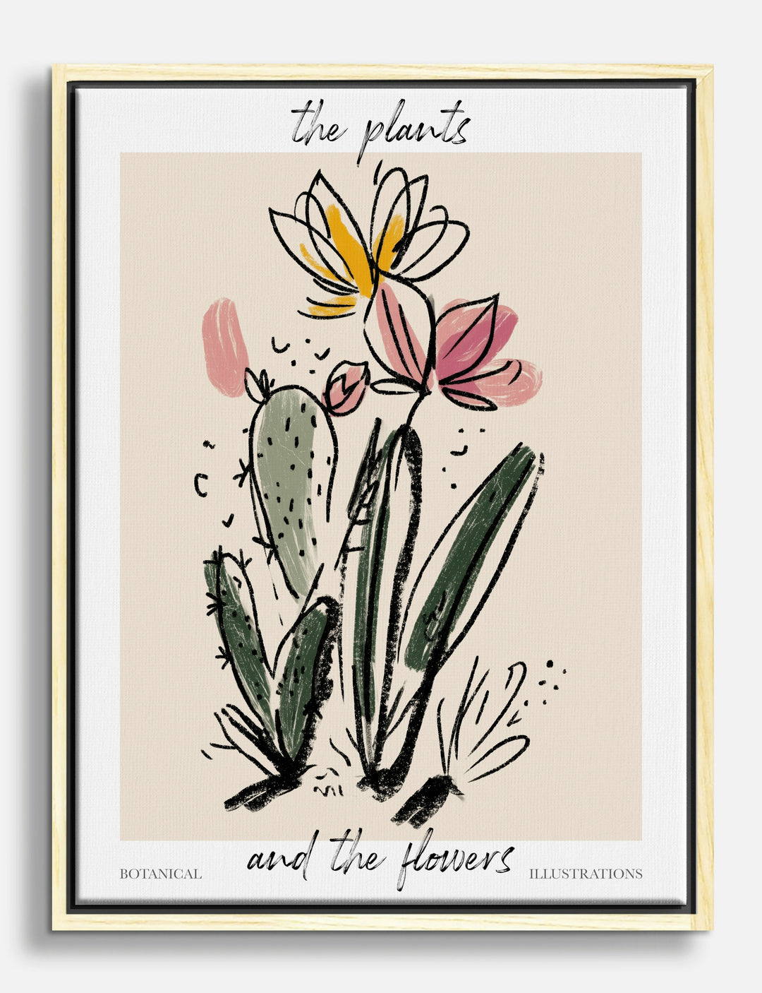 Fresh, whimsical lines meet botanical beauty in this vibrant piece. A lively cactus stands tall, surrounded by sketchy strokes of soft pinks, yellows, and greens—like a playful daydream come to life on your wall.