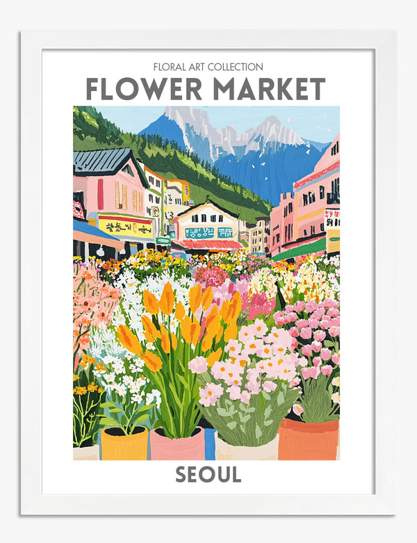Affiche marché aux fleurs de Séoul en couleurs vives