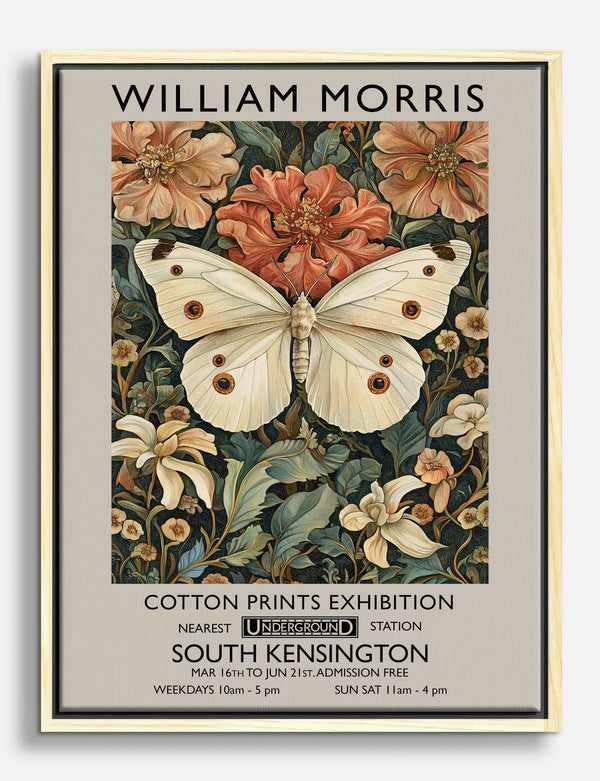 Affiche chat blanc aux fleurs inspirée par William Morris