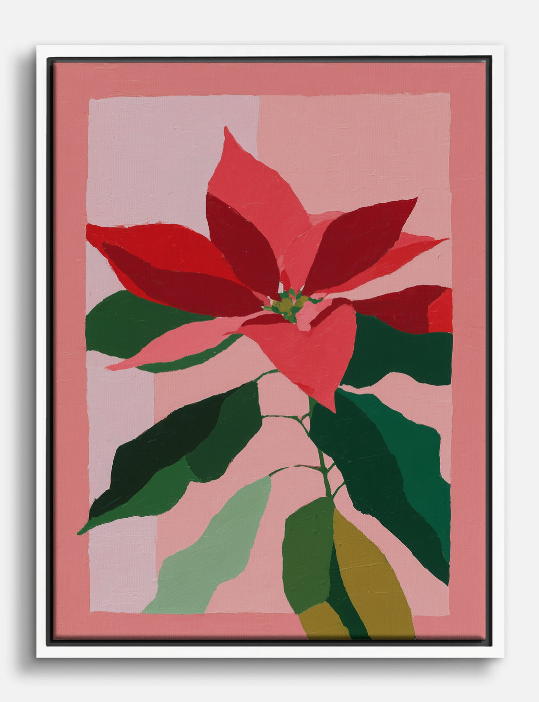A single vibrant poinsettia takes center stage, radiating warmth and confidence with its bold red petals and lush green leaves. This piece instantly energizes any room, making your space feel both fresh and inviting.