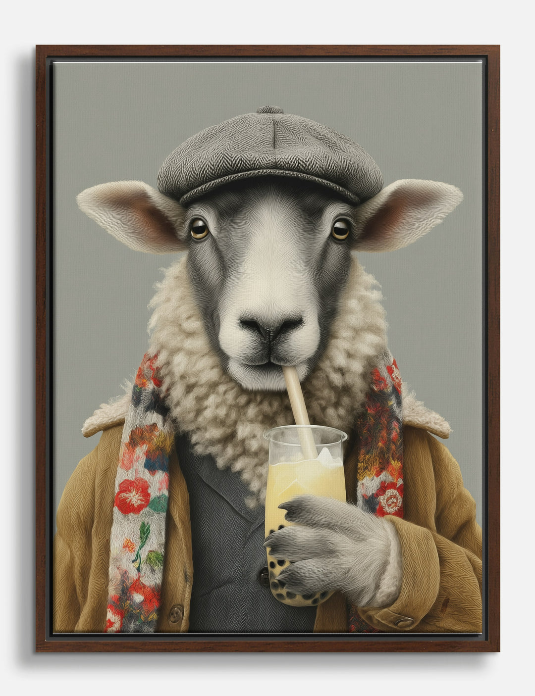 Dive into delightful whimsy with our stylish sheep enjoying a bubble tea. This playful piece adds a dash of charm to any room, making it perfect for your living room or office. The earthy tones and quirky vibe effortlessly blend with various decor styles, offering a unique touch of personality and fun. Let this art print be a joyful reminder that great style is easy and accessible.