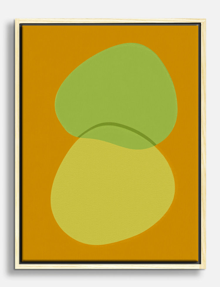 Fresh and playful, this piece brings together soft, overlapping shapes in zesty green and golden hues. It’s like a splash of sunshine and a hint of spring, right on your wall. Instantly energize your living room or brighten up your home office — wherever you need a pop of modern, feel-good color.