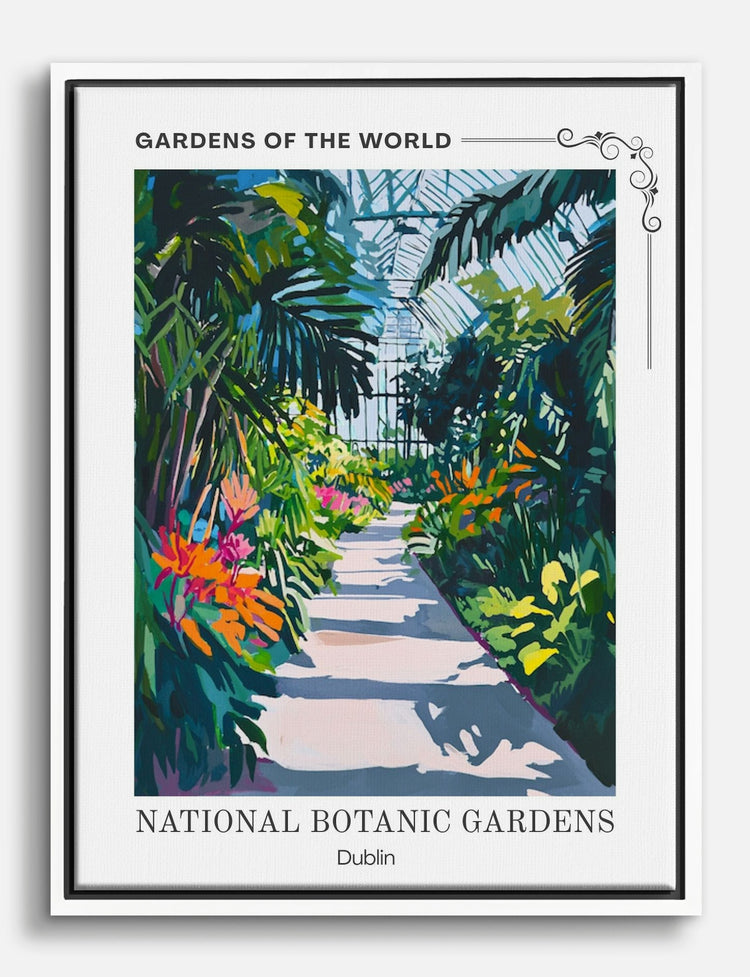 Step into a lush oasis with this vibrant piece, capturing the serene beauty of Dublins National Botanic Gardens. Let the vivid greens and pops of colorful blossoms breathe life into your space, making it a perfect centerpiece for your living room or bedroom. This artwork brings a touch of nature indoors, offering a refreshing escape that complements any decor style.