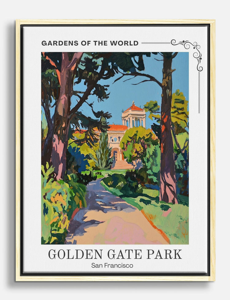 Step into a sunlit path in Golden Gate Park, where vibrant greens and a charming architectural gem invite you to explore. This artwork brings a splash of Californian warmth to your space, perfect for brightening up a living room or adding a touch of nature to your bedroom. The lively color palette complements modern and bohemian decor, transforming your home into a personal oasis of style and inspiration.