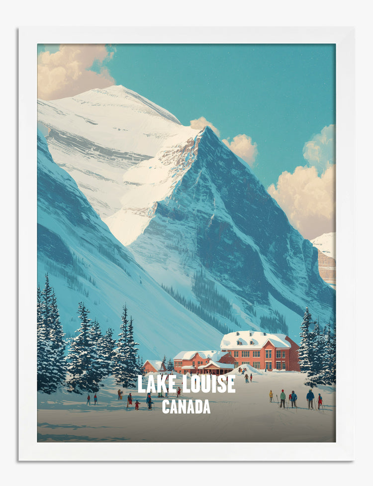 Step into a scene that feels both grand and inviting—snow-dusted pines, a charming mountain lodge, and the breathtaking majesty of Lake Louise’s iconic peaks. This piece brings the crisp energy of a winter getaway right to your wall, infusing your space with a sense of adventure and calm. Perfect for your living room or bedroom, it’s a daily reminder to savor both the beauty of nature and the warmth of home. The cool, serene blues and fresh whites pop against any decor, adding a touch of effortless style and sophistication. Let your space reflect your love for travel, wonder, and the simple joys of the season. With this print, every day feels like a cozy retreat.