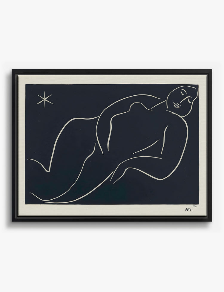 Bold, fluid lines capture a sense of ease and quiet wonder in this iconic Matisse piece. The reclining figure, traced in gentle curves against a deep midnight blue, brings a touch of poetic calm to any room. Looking to add a statement that’s both stylish and serene? This artwork is perfect for your bedroom or living room, where its minimal palette and dreamy mood invite relaxation and self-reflection. Pair it with soft neutrals or rich jewel tones—its timeless simplicity plays well with everything from modern minimalism to eclectic layers. Let your space tell a story of effortless confidence and artful living, all without breaking the bank.