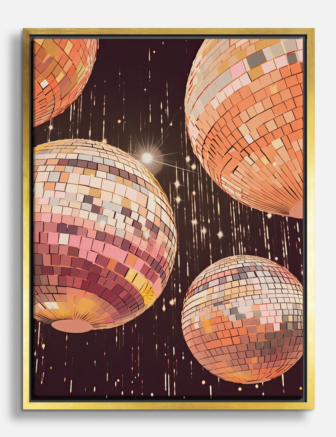 Step into a world where every night feels like a celebration. Shimmering pink and gold disco balls cascade across a dreamy, starlit sky, instantly lifting the mood of your space. This piece radiates pure joy, bringing playful energy and a touch of retro glamour to your home.