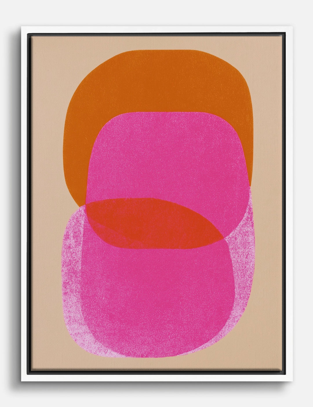 Bold color, big impact — this piece is all about unapologetic self-expression. Hot pink and vibrant orange shapes overlap in a playful dance, bringing a burst of personality to your walls.