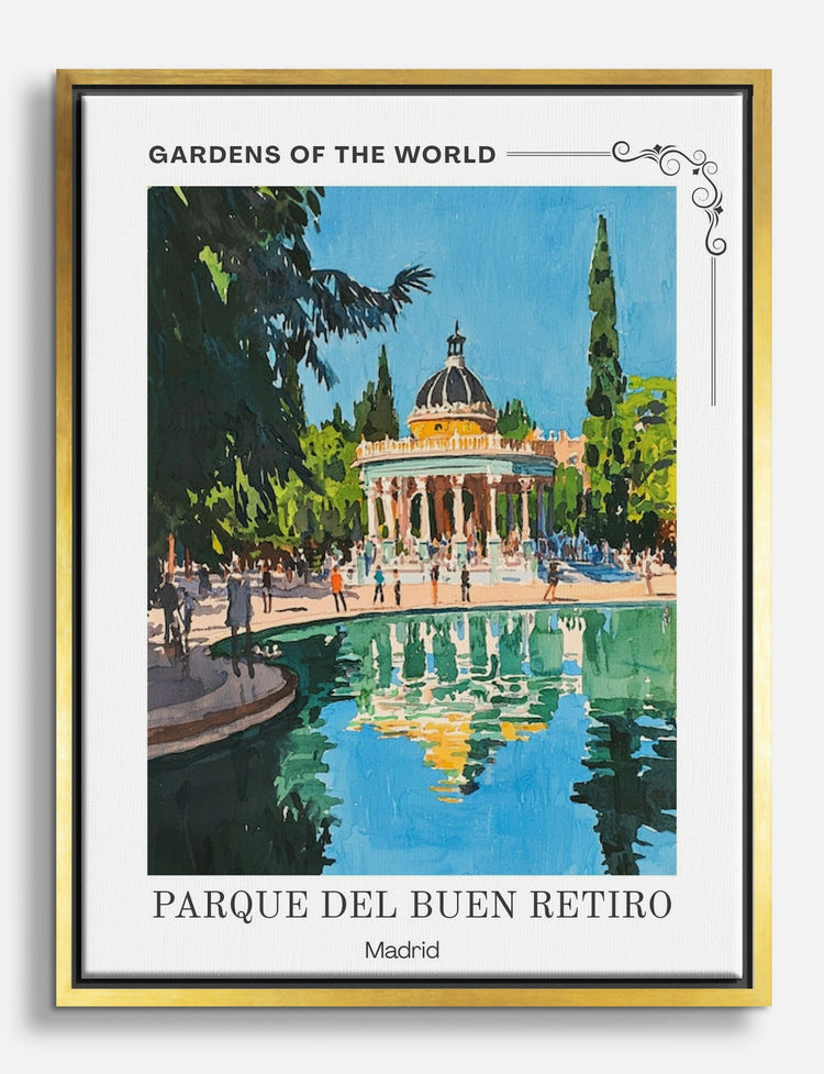 Step into serenity with this captivating scene of Madrid’s iconic Parque del Buen Retiro. The vibrant hues and tranquil waters invite a sense of peace and elegance to your space. Perfect for your living room or office, this piece effortlessly complements both modern and classic decor. Feel the pride of showcasing a unique piece that transforms your home into a stylish haven of self-expression.