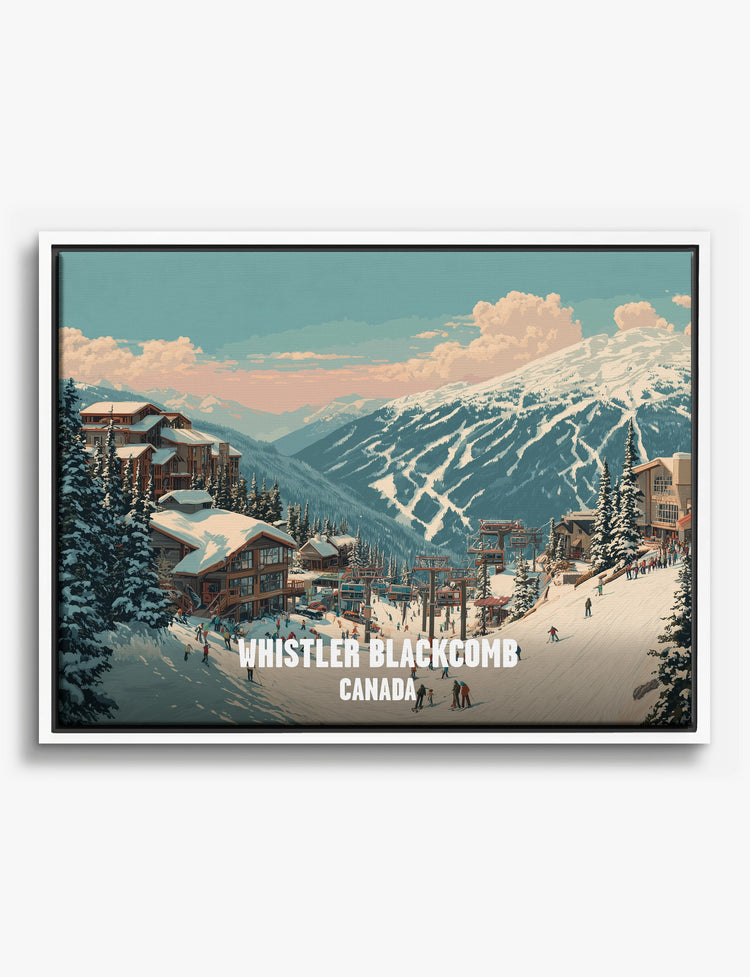 Ever wish you could bring that fresh, mountain air feeling right into your home? This vibrant print captures the iconic charm of Whistler Blackcomb, where cozy chalets nestle beneath snowy peaks and skiers glide through a winter wonderland. The crisp blues and soft whites set a serene, uplifting mood—perfect for energizing your living room or adding a touch of adventure to your office. Its classic palette plays well with both modern and rustic decor, so you can easily make your space feel inviting and personal. Let this scene remind you every day that style and wanderlust can live right on your walls. Its more than just decor—its a daily invitation to embrace joy and the spirit of exploration.