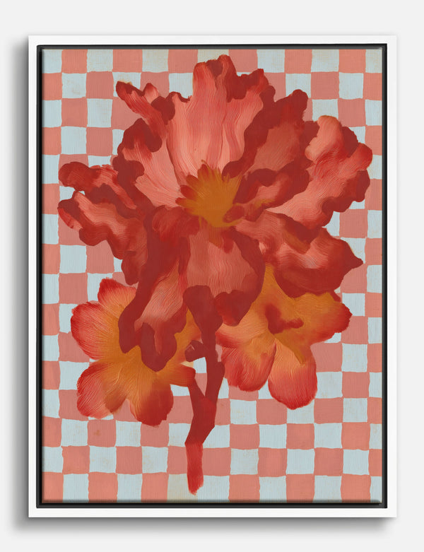 Tela fiore rosso su sfondo a scacchi