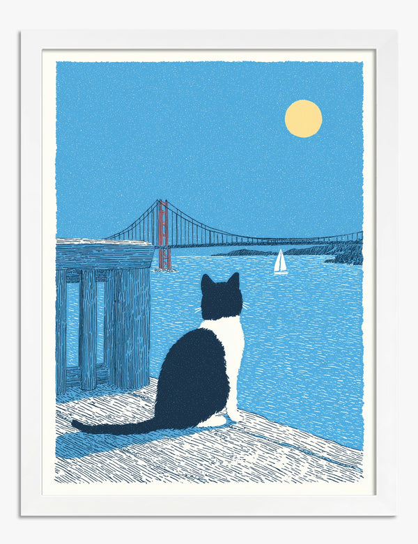 Poster gatto al chiaro di luna sulla baia