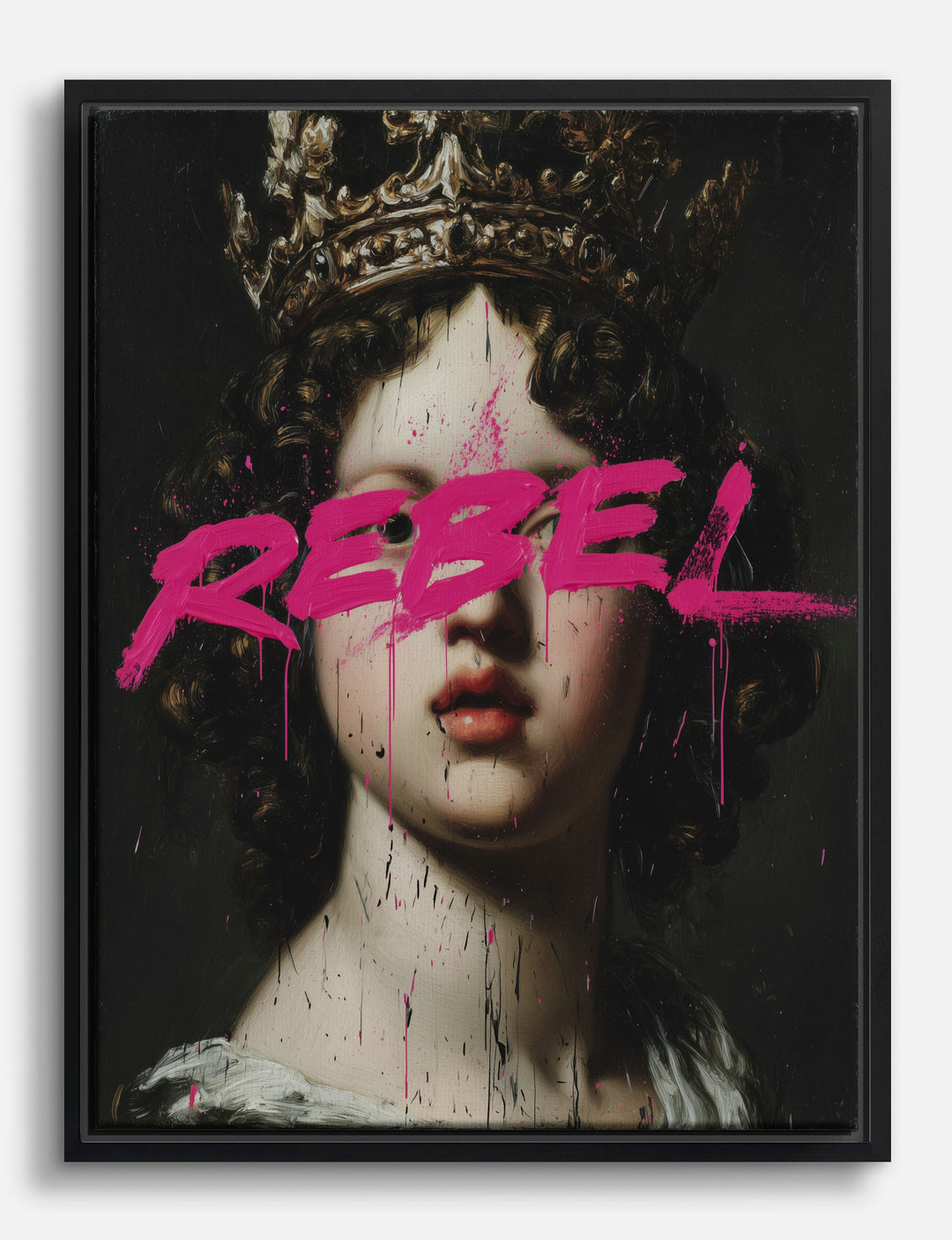 Boldness never looked so regal. This striking portrait fuses vintage royalty with a fearless modern twist, declaring its attitude front and center. The rich, classical details meet a pop of rebellious pink graffiti, instantly energizing your space with confidence and edge.