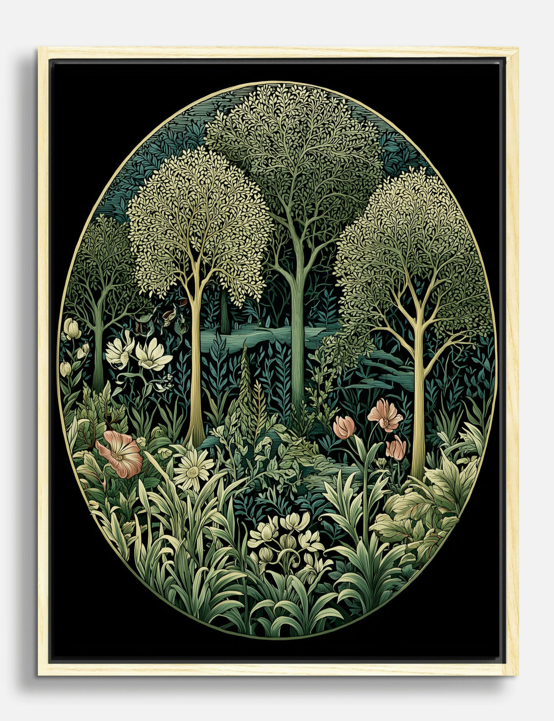 Step into a storybook forest every time you glance at your walls. This lush, art nouveau-inspired garden scene weaves together soft greens and delicate blooms, instantly calming your space while adding a touch of vintage charm. Perfect for your living room or bedroom, it invites you to pause and enjoy a moment of natural beauty, no matter how busy your day gets. The gentle olive and green palette pairs effortlessly with both modern and traditional decor—think cozy neutrals, soft woods, or even bold, eclectic accents. Youll love the sense of pride that comes from curating a home thats as unique as you are. With this piece, style feels easy, personal, and—best of all—entirely within reach.