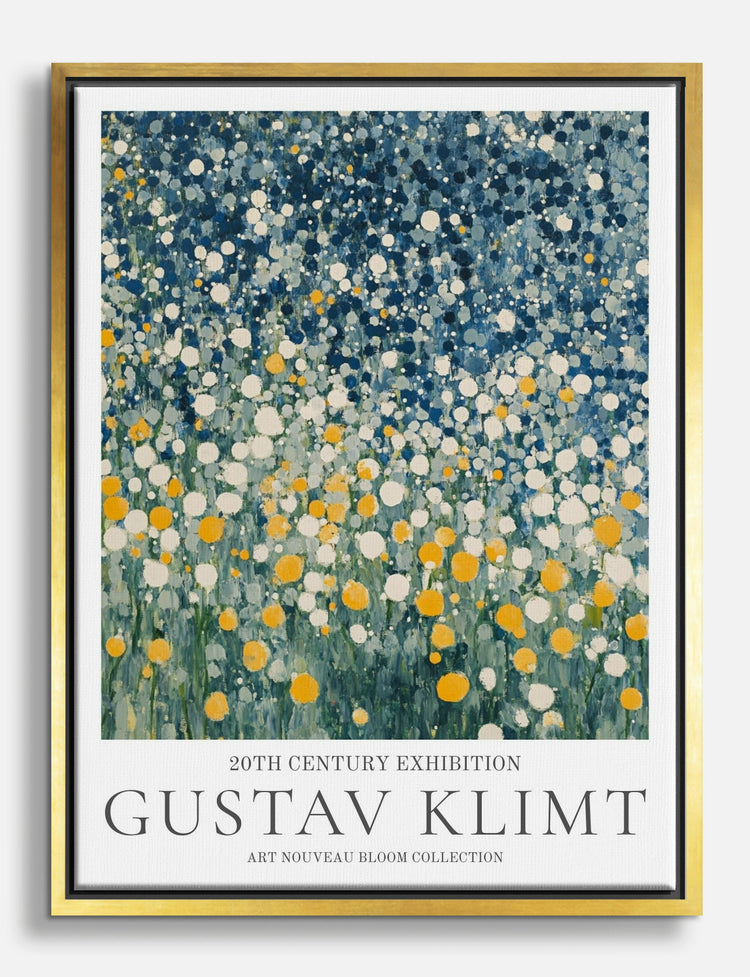 Let your walls bloom with the enchanting beauty of Klimts floral masterpiece. This piece effortlessly infuses your space with a sense of serenity and elegance, perfect for your living room or bedroom. The rich blues and vibrant yellows create a harmonious palette that complements a variety of decor styles, bringing joy and pride to your home. Transform your favorite corner into a garden of artistic delight.