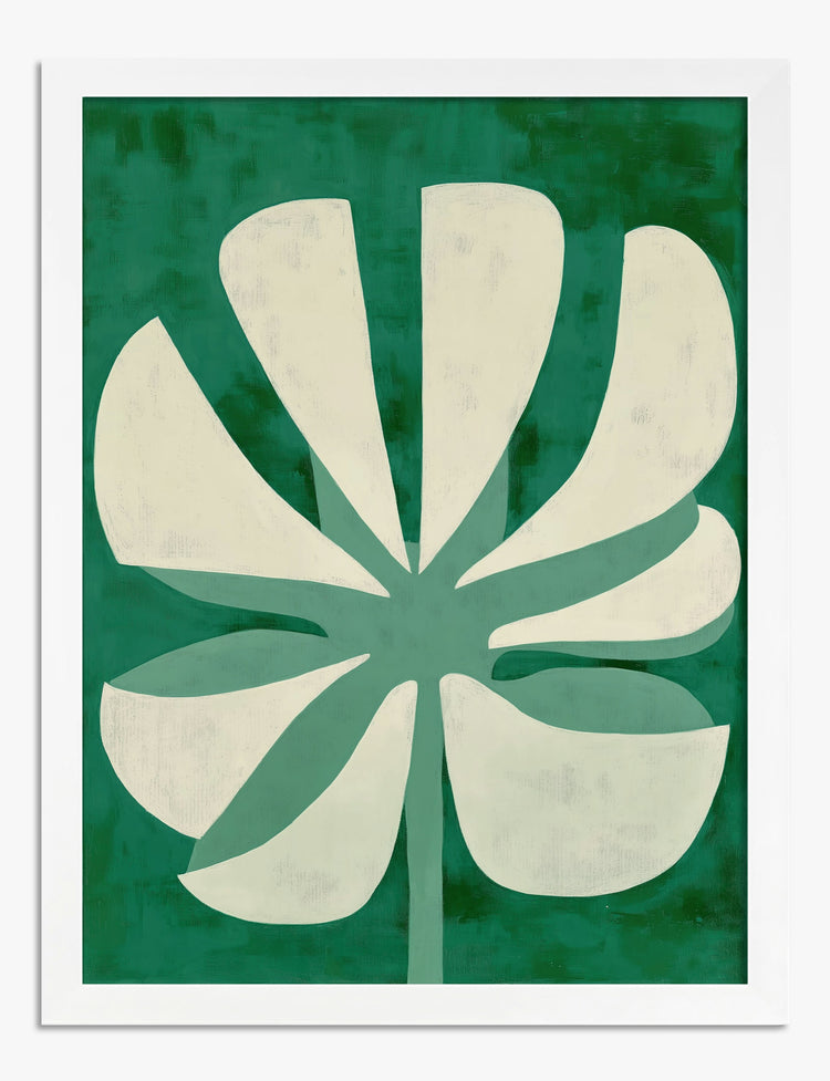 Bold shapes and lush greens instantly energize your space with this striking botanical piece. The playful, oversized leaf design feels both modern and organic—perfect for anyone craving a pop of nature without the fuss. Whether youre looking to refresh your living room or add personality to your home office, this artwork effortlessly brings the outdoors in. Its clean palette of rich green and creamy white plays well with both minimalist and maximalist decor, so youll never feel boxed in by your style. Let this print be a reminder that transforming your home can be as easy as hanging something you love. Every glance is a little boost of pride and freshness—no green thumb required.