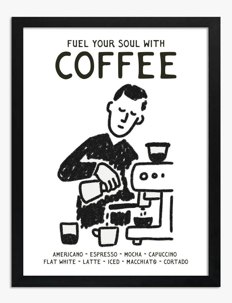 Start your day with a wall that’s as energized as you are. This playful black-and-white illustration captures the ritual of coffee—pouring, brewing, and savoring—infusing your space with warmth and a dash of personality. Hang it in your kitchen or office and let every glance remind you of those soul-fueling moments. The minimalist palette pops against colorful walls or blends seamlessly with modern neutrals, making it a versatile upgrade for any decor. Give your home that inviting, café-inspired vibe—no renovation needed. With this piece, you’ll feel the pride of a space that truly reflects your love of good coffee and great style.