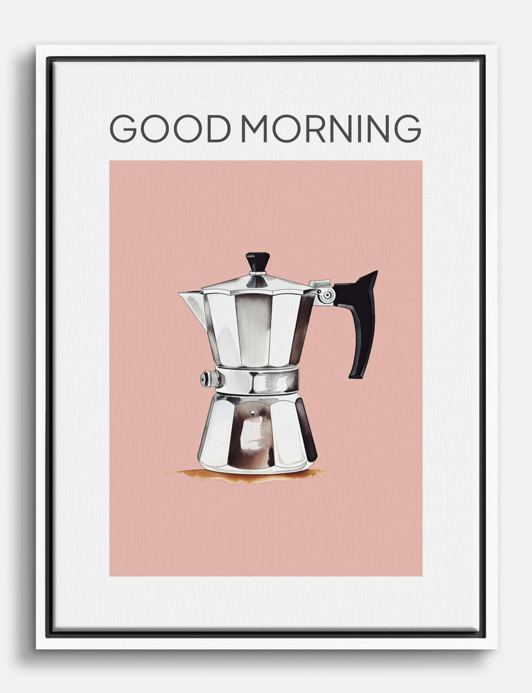 Start your day with a touch of European café charm. This cheerful moka pot illustration pops against a soft pink backdrop, bringing warmth and a hint of nostalgia to your kitchen or breakfast nook. The minimalist palette makes it easy to pair with any decor, while the playful “Good Morning” greeting sets a welcoming tone for every sunrise. Elevate your coffee corner and let your space reflect the joy of your morning rituals—stylish, inviting, and uniquely yours.