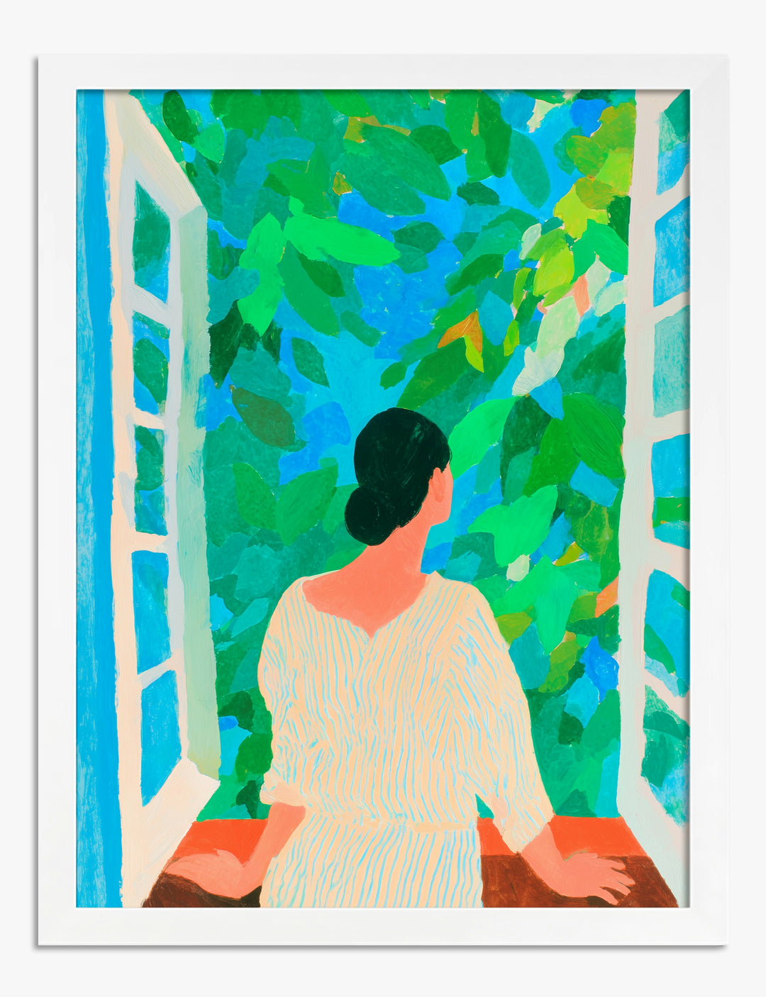 Start your day with a breath of fresh style. This radiant print captures that quiet, hopeful moment when you pause by an open window, soaking in the lush greens and sunlit blues just beyond. Whether you hang it in your bedroom or living room, you’ll feel an instant lift—like a gentle breeze has swept through your space. The vibrant palette of leafy greens and sky blues pops against both light and bold decor, making it effortless to refresh any wall. Let this piece remind you to savor the little joys. It’s a simple, affordable way to bring a sense of calm, possibility, and personal expression into your home.