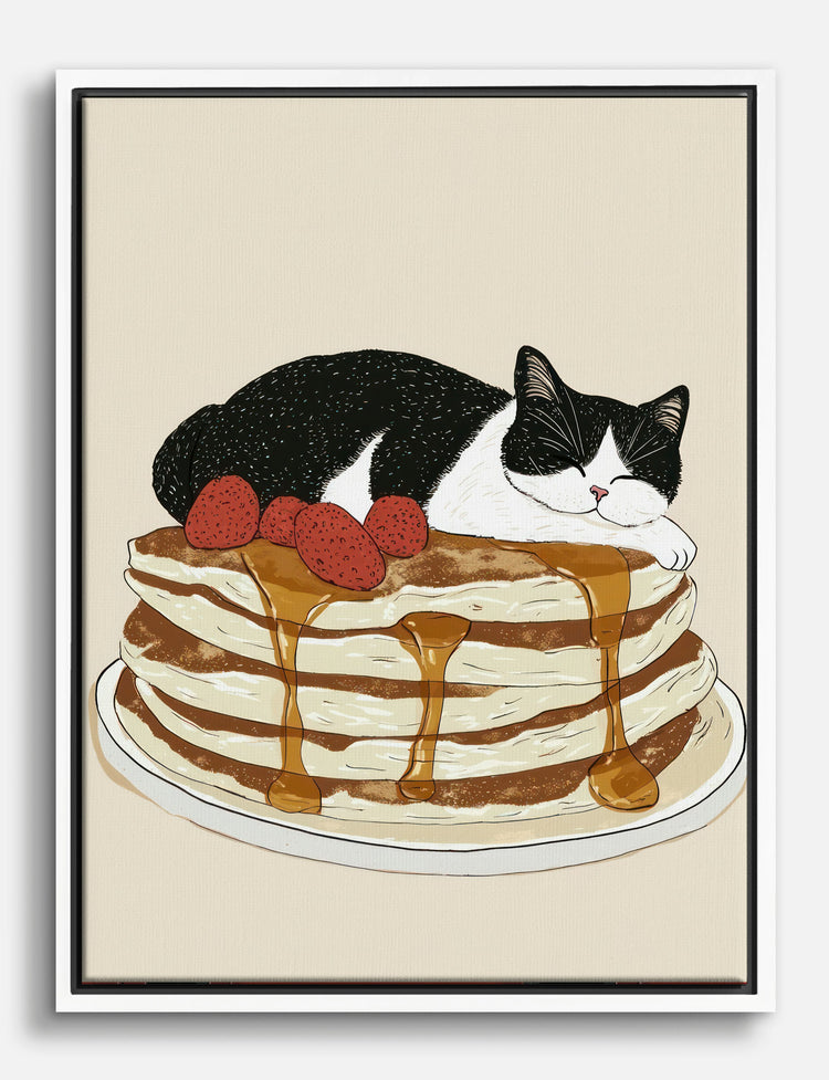 A stack of pancakes never looked so inviting—especially with a cozy cat napping on top. This playful piece brings a sense of warmth and whimsy, perfect for those who want their space to spark a smile.