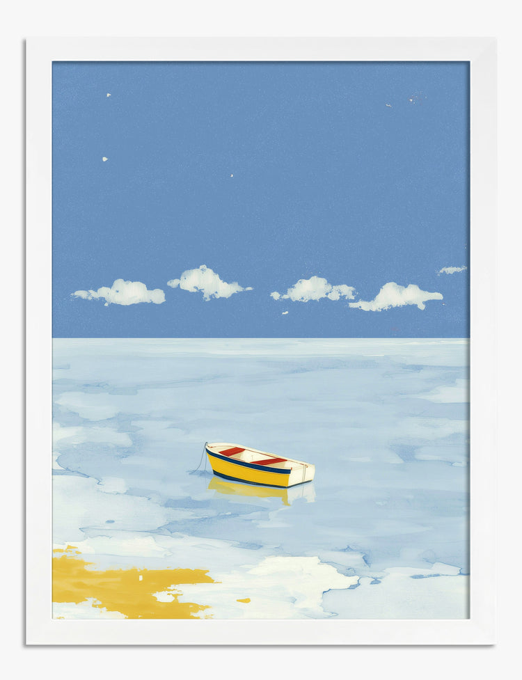 A single boat floats gently on a sea of calm, inviting a sense of stillness and wonder into your space. This piece is all about slowing down—perfect for anyone craving a moment of peace in their busy day. The soft blue sky and golden hints create an effortless, breezy vibe that works beautifully in both modern and coastal-inspired rooms. Whether you hang it in your bedroom or living room, youll feel transported to a serene seaside retreat every time you walk by. The gentle palette complements everything from crisp white linens to natural wood accents, making styling a breeze. Bring home a daily reminder to pause, breathe, and savor the simple joys—no passport required.