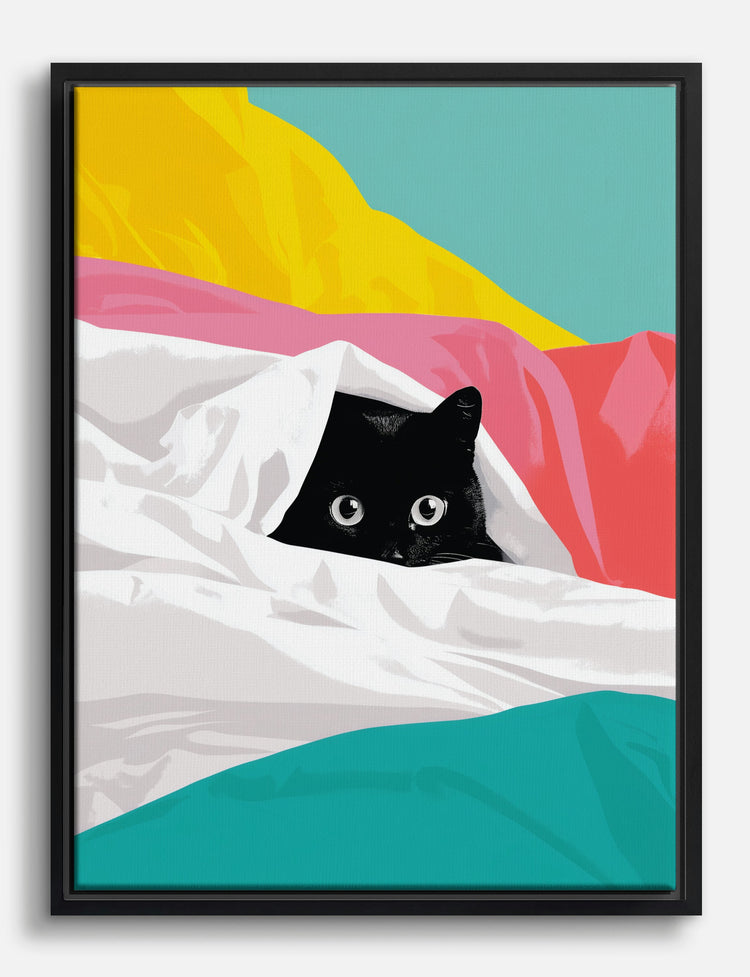A pair of bright, curious eyes peek out from a sea of colorful blankets, instantly sparking a sense of playful coziness. This piece brings a dash of unexpected charm and warmth to any space – perfect for those who want their home to feel welcoming and full of personality.