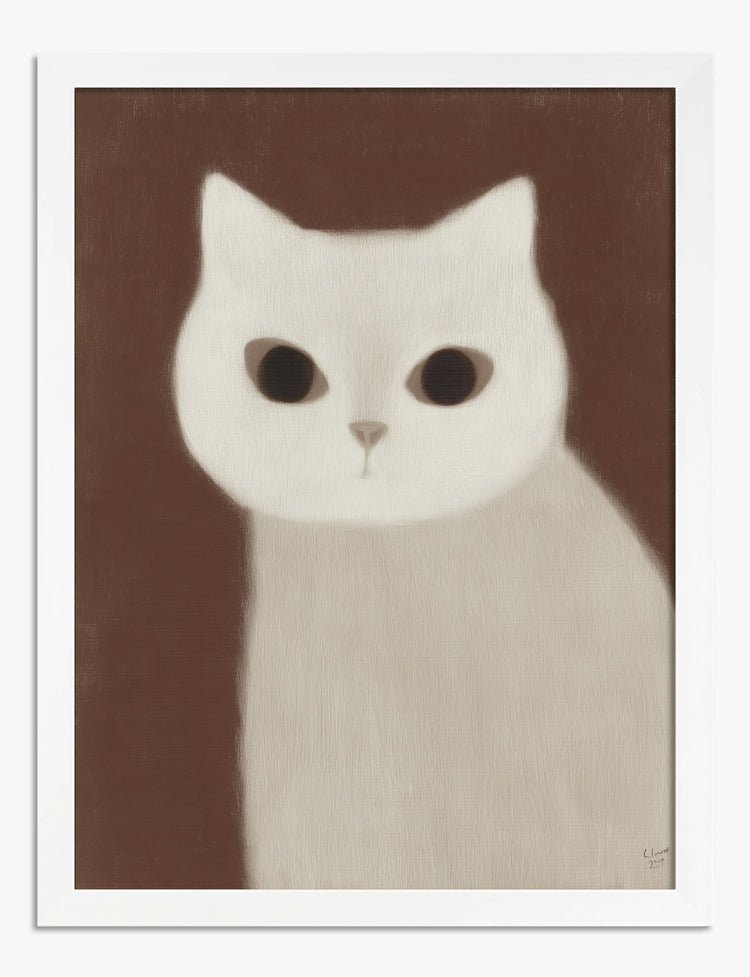 Big, soulful eyes meet you with a calm curiosity in this minimalist cat portrait. The gentle off-white fur and soft brown backdrop create a soothing, modern vibe that instantly warms up your space. Perfect for a bedroom or cozy reading nook, this piece brings a quiet confidence and a hint of playful personality to your walls. Its neutral color palette slips effortlessly into both light and dark decor schemes, adding a touch of whimsy without ever overpowering your style. Let this charming feline remind you that great design doesn’t have to be complicated — sometimes, all it takes is one unique piece to make your home feel truly yours.