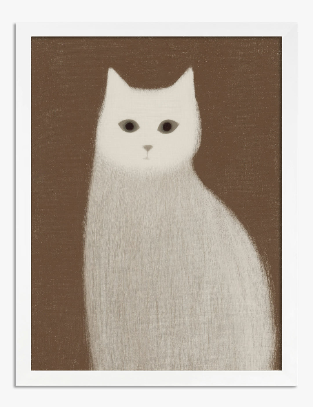 Minimalism gets a cozy twist with this serene white cat portrait. Its soft, dreamy fur and gentle eyes instantly calm any space, inviting a sense of quiet confidence and warmth. Perfect for your bedroom or reading nook, this piece brings a subtle sophistication that’s both approachable and effortlessly stylish. The warm brown background pairs beautifully with neutrals, earth tones, or even pops of bold color, making it easy to blend into your unique decor. Let this tranquil feline remind you that great style doesn’t have to shout. It’s about finding art that feels like you — relaxed, refined, and a little bit playful. Transform your room into a haven you’ll love to show off, with art that’s as affordable as it is distinctive.