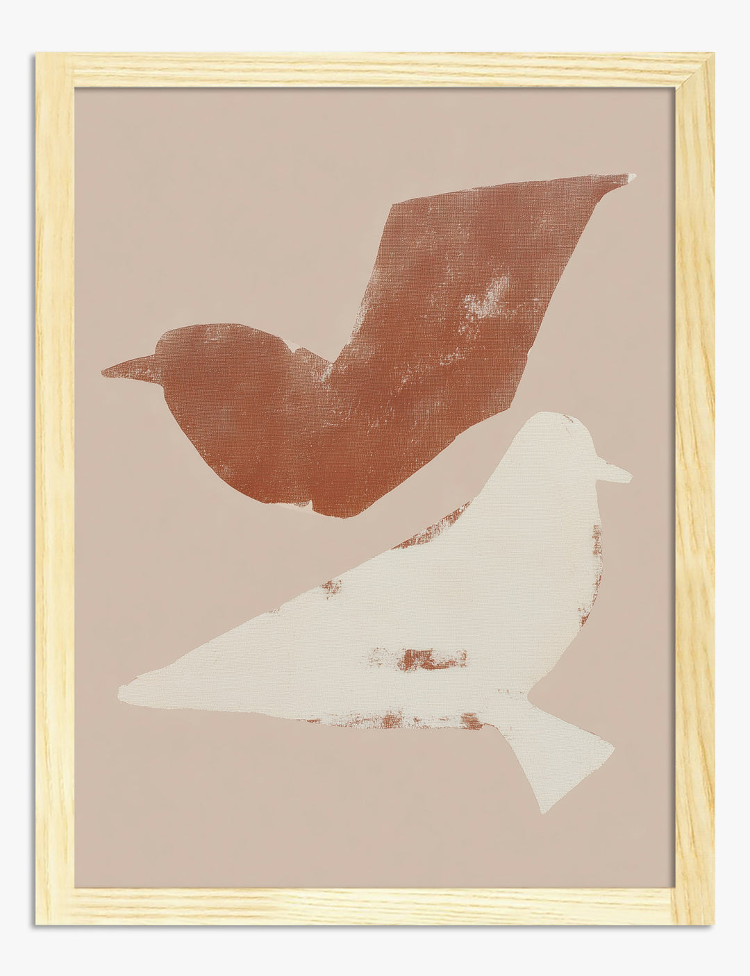 Who says minimal can’t be full of personality? Two softly abstract bird shapes—one in earthy terracotta, the other in creamy white—bring a sense of calm and effortless style to your space. Their gentle forms feel both playful and peaceful, making them a perfect fit for anyone craving a little serenity at home. Hang this piece in your bedroom or living room to add a subtle pop without overwhelming your decor. The warm, neutral palette pairs beautifully with natural woods, cozy textiles, and modern or boho-inspired interiors. Let your walls speak with a quiet confidence. This print is more than just art—it’s an invitation to slow down, breathe, and enjoy the beauty in simplicity.