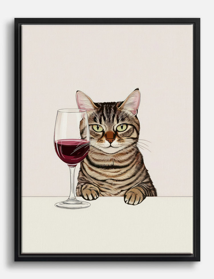 A tabby cat with attitude and a glass of red—this piece instantly adds a dash of witty charm to your space. Whether you’re a cat lover, a wine enthusiast, or just someone who appreciates a little playful sophistication, this artwork is sure to spark conversation and smiles.