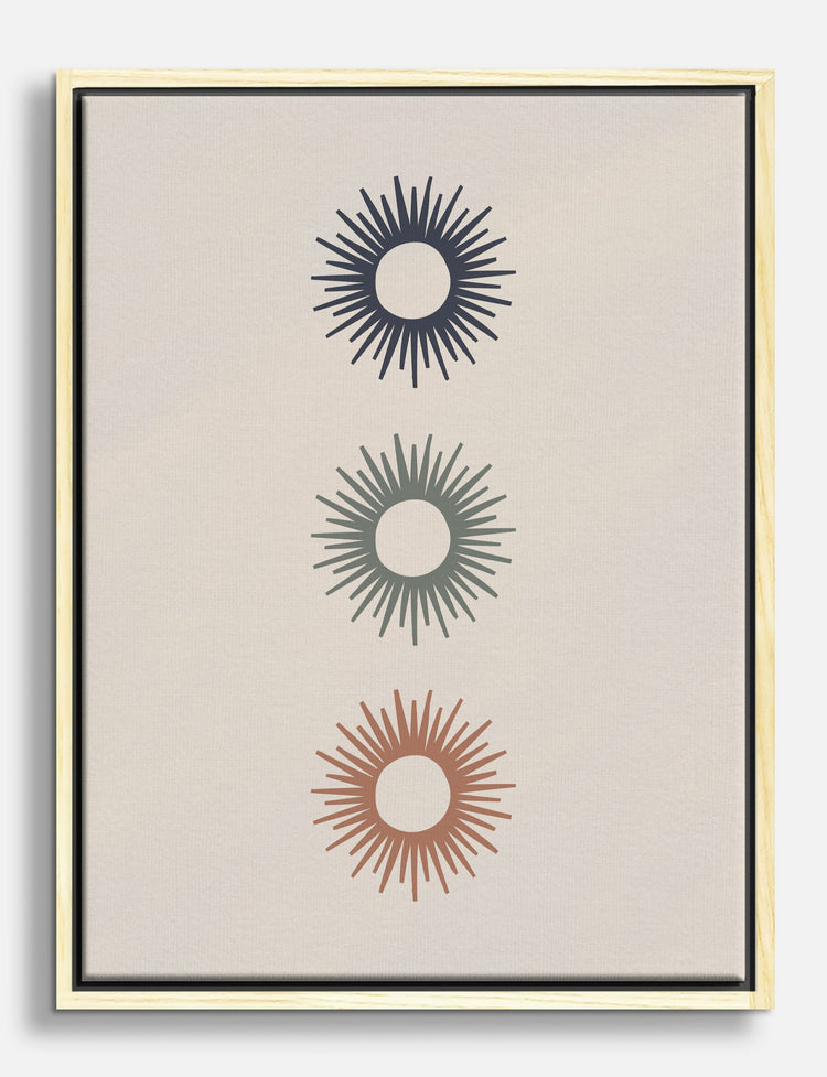 Three radiant bursts stacked in perfect harmony—this piece is pure sunshine for your walls. The soothing navy, sage, and terracotta tones bring calm energy to any room, making your space feel instantly more curated and unique.