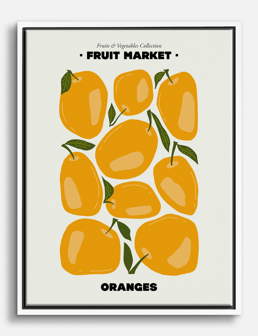 Bursting with juicy color, this playful orange illustration brings instant joy to any wall. The bold, sun-kissed shapes and lush green leaves channel the carefree vibe of a weekend stroll through your favorite fruit market.