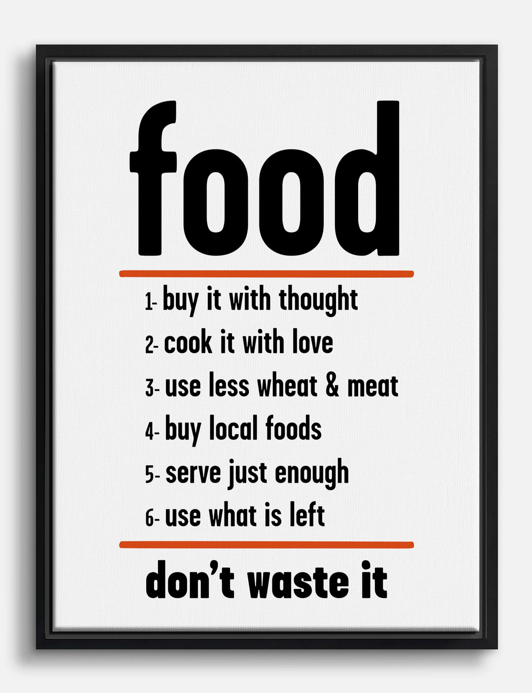 Bold black type and a punchy message bring instant energy to your kitchen. This typography piece isn’t just a reminder—it’s an invitation to savor every meal and celebrate mindful living. The sleek design pops against any wall, making it the perfect finishing touch for your cooking space.