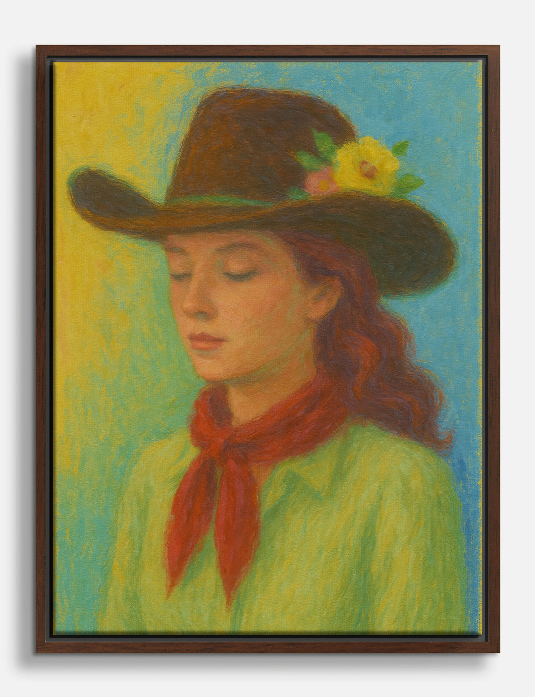 Lose yourself in the serene beauty of Western Elegance. This artwork captures a moment of quiet reflection, bringing a sense of calm and style to any room. The warm earth tones and soft details make it a perfect fit for your living room or bedroom. Let this piece inspire a feeling of pride and self-expression in your home, showing that great style is as effortless as it is accessible.