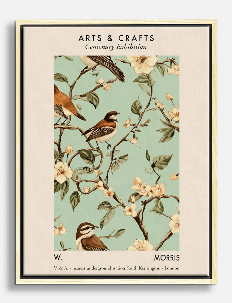 Let your walls sing with vintage charm—this William Morris-inspired piece weaves delicate birds and blooming branches across a soft blue-green canvas. It’s an instant mood-lifter, inviting a sense of calm and timeless elegance into any room.
