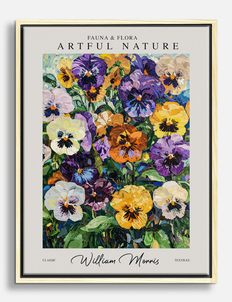Bursting with painterly color, this William Morris-inspired piece brings a joyful garden right to your walls. Each pansy feels like a brushstroke of optimism, inviting a sense of warmth and fresh possibility into your favorite space.
