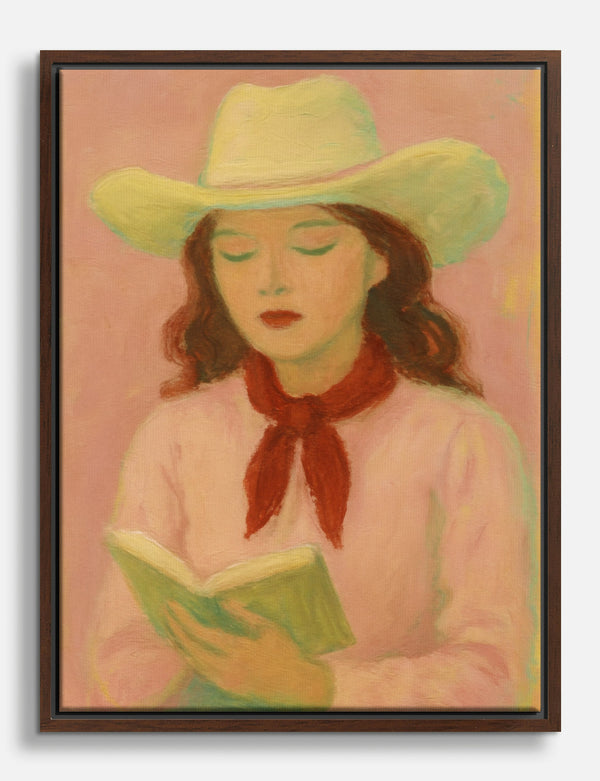 Poster lettrice in stile western con cappello rosso