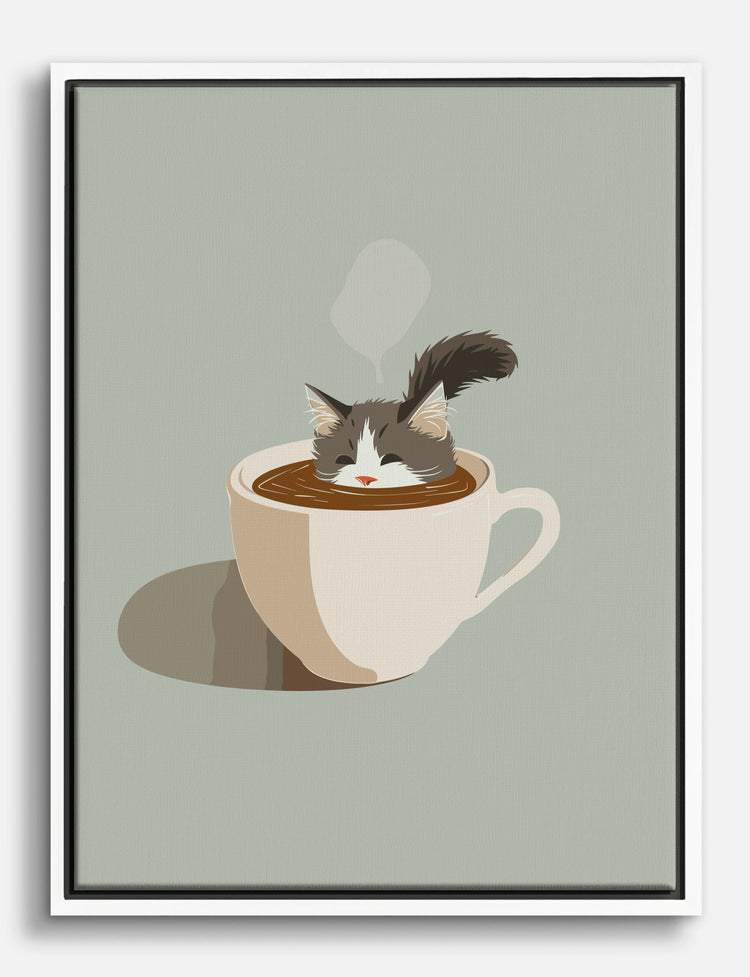 A fluffy feline peeks out from your morning brew, bringing a playful dose of charm to any space. This print is all about infusing your home with a little joy—perfect for anyone who believes life (and décor) is better with a hint of whimsy. The gentle beige and grey palette blends effortlessly with modern kitchens or adds a soft, quirky twist to your home office. Let this adorable moment spark smiles and make every day feel a bit more delightful.