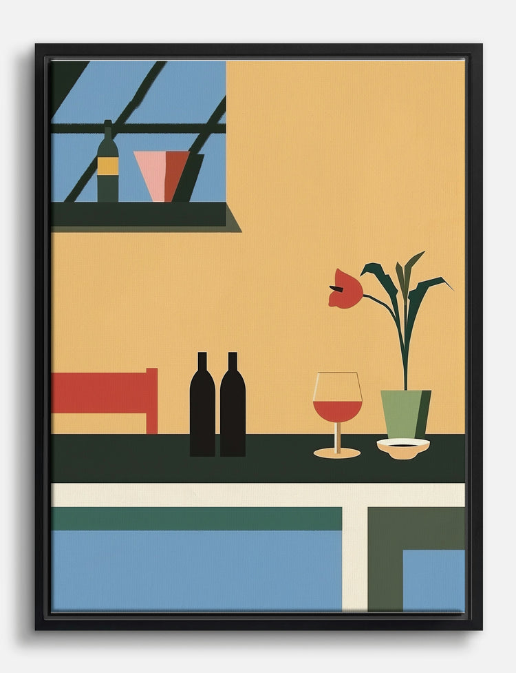 Step into a world where simplicity meets style with this vibrant piece. The bold colors and geometric forms create a lively atmosphere, perfect for energizing your kitchen or dining space. Youll love how the playful arrangement of bottles and plants adds a touch of modern charm, effortlessly complementing your decor. Let this artwork transform your home into a hub of creativity and joy.