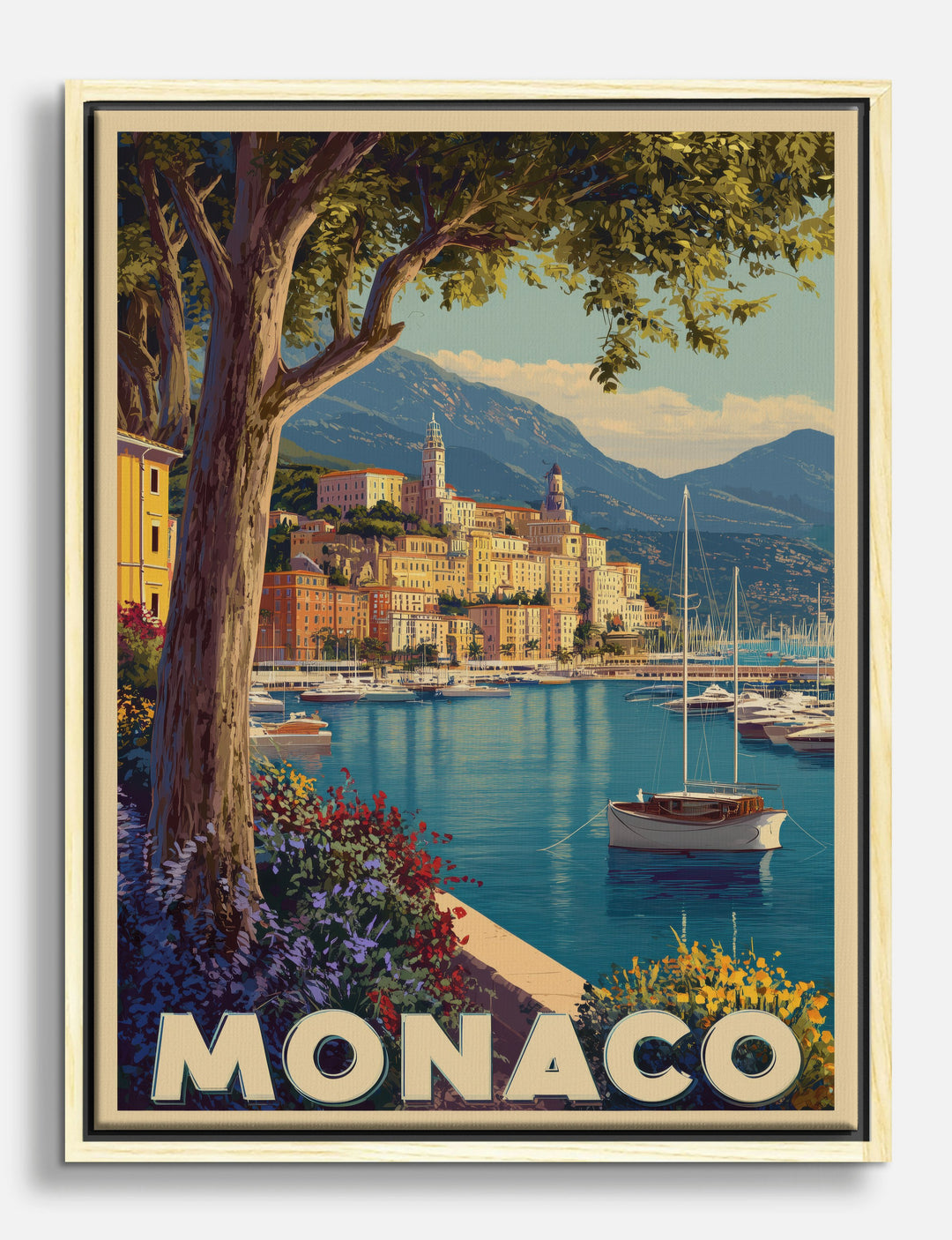 Step into sun-soaked elegance with this vintage-inspired Monaco print. It’s a celebration of golden coastlines, pastel-hued villas, and the effortless glamour of the Mediterranean. The lush greenery and sparkling blue waters instantly brighten your walls, making every day feel like a getaway.
