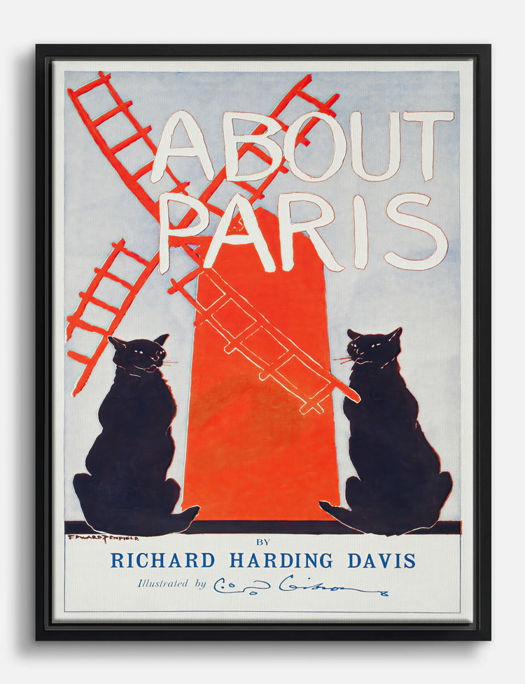 Bold silhouettes, Parisian charm—this piece brings a playful confidence to your walls. Two striking black cats lounge beneath a bright red windmill, inviting a sense of intrigue and whimsy into your space.