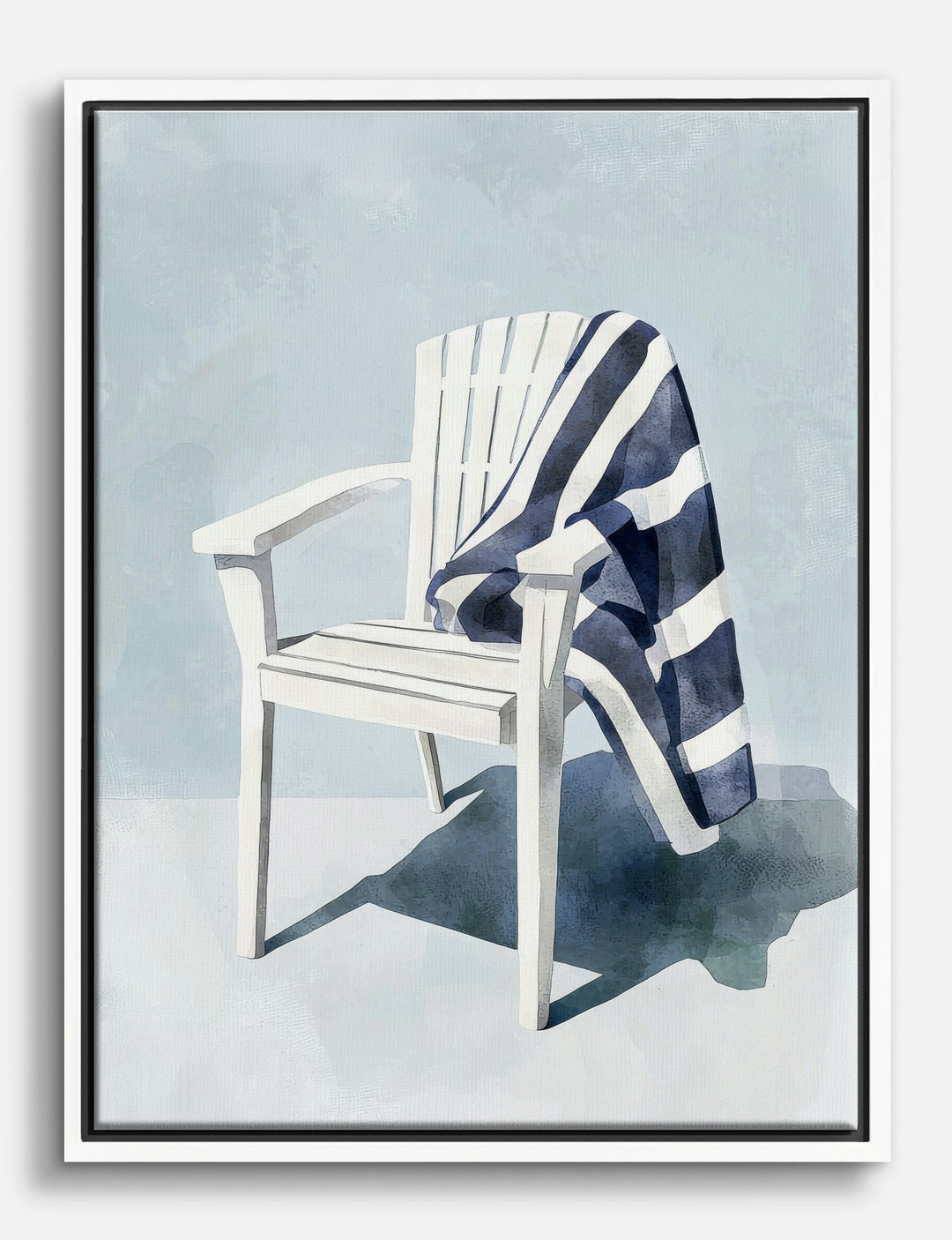 A white chair adorned with a classic blue-striped towel invites you to bask in coastal calm. This piece effortlessly brings a touch of beachside tranquility to your home, making it perfect for your living room or bedroom. Its soothing palette complements both modern and minimalist decor, letting you feel the joy of a seaside escape every day. Transform your space with this unique blend of style and serenity.