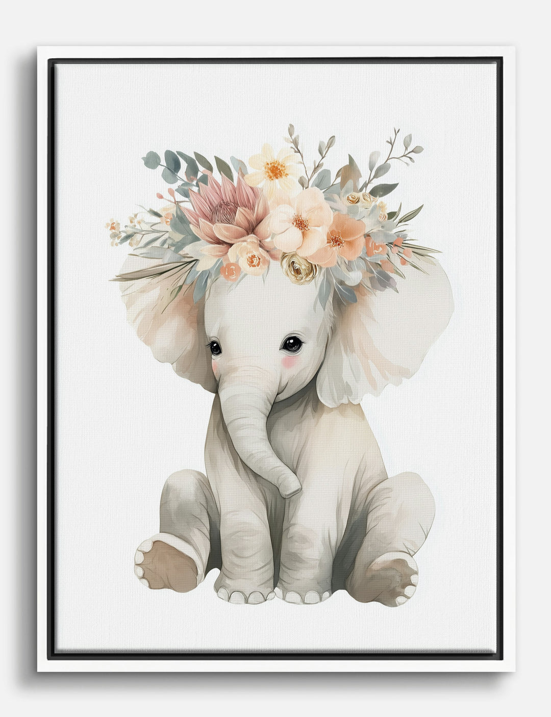 Who says your walls can’t smile back? This charming elephant, crowned with a soft spray of watercolor florals, brings instant warmth and whimsy to any space. Its gentle palette of blush, beige, and creamy whites invites calm and comfort, making it the perfect finishing touch for a nursery or kids’ room.