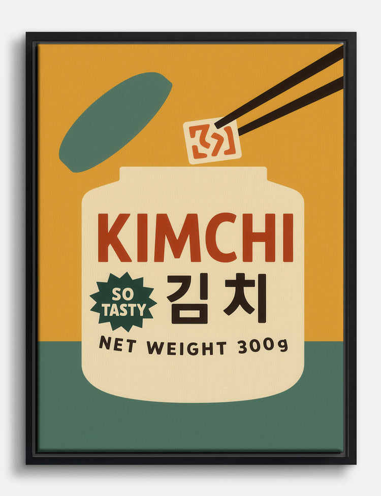 Spice up your space with this vibrant kimchi artwork! Its bold typography and playful design bring a burst of flavor to any kitchen or dining area. The warm hues effortlessly complement modern and vintage decor, making it a versatile choice for your home. Let this piece inspire culinary creativity and pride every time you step into the room.