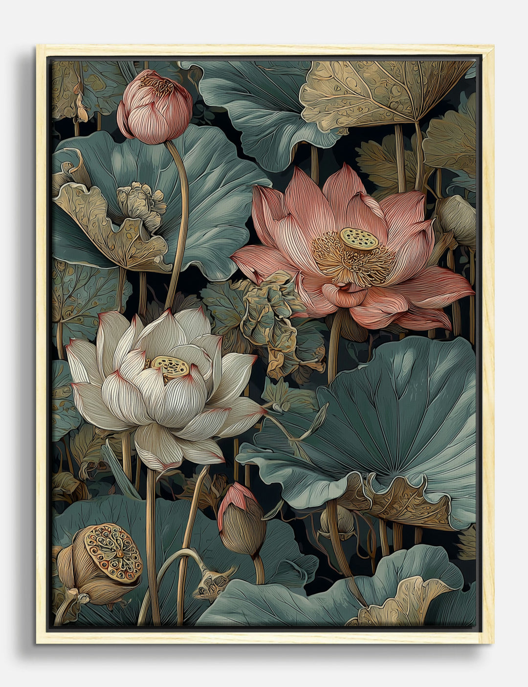Soft petals and sweeping leaves bring a touch of timeless elegance to your space. This botanical beauty is more than just wall decor—it’s a gentle invitation to slow down and savor the calm. Imagine these lush water lilies adding a peaceful, curated vibe to your bedroom or living room, making every day feel a bit more serene.