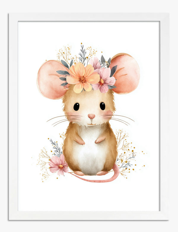 Poster ritratto di topolino con fiori